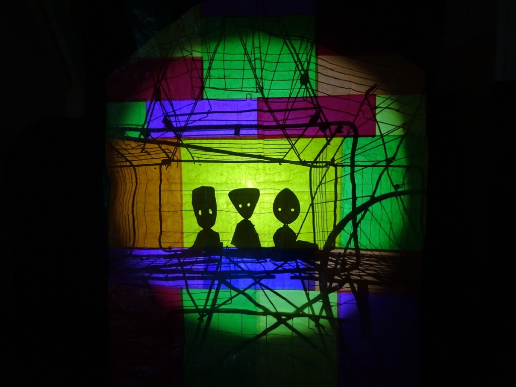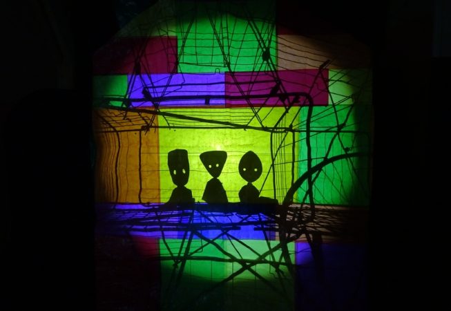 Au détour d’une rue, trois personnages se retrouvent devant un tas de ferraille, poubelles et autres objets abandonnés. Terrain de jeu parfait ! Ils explorent ce bazar qui petit à petit se transforme en cabane.